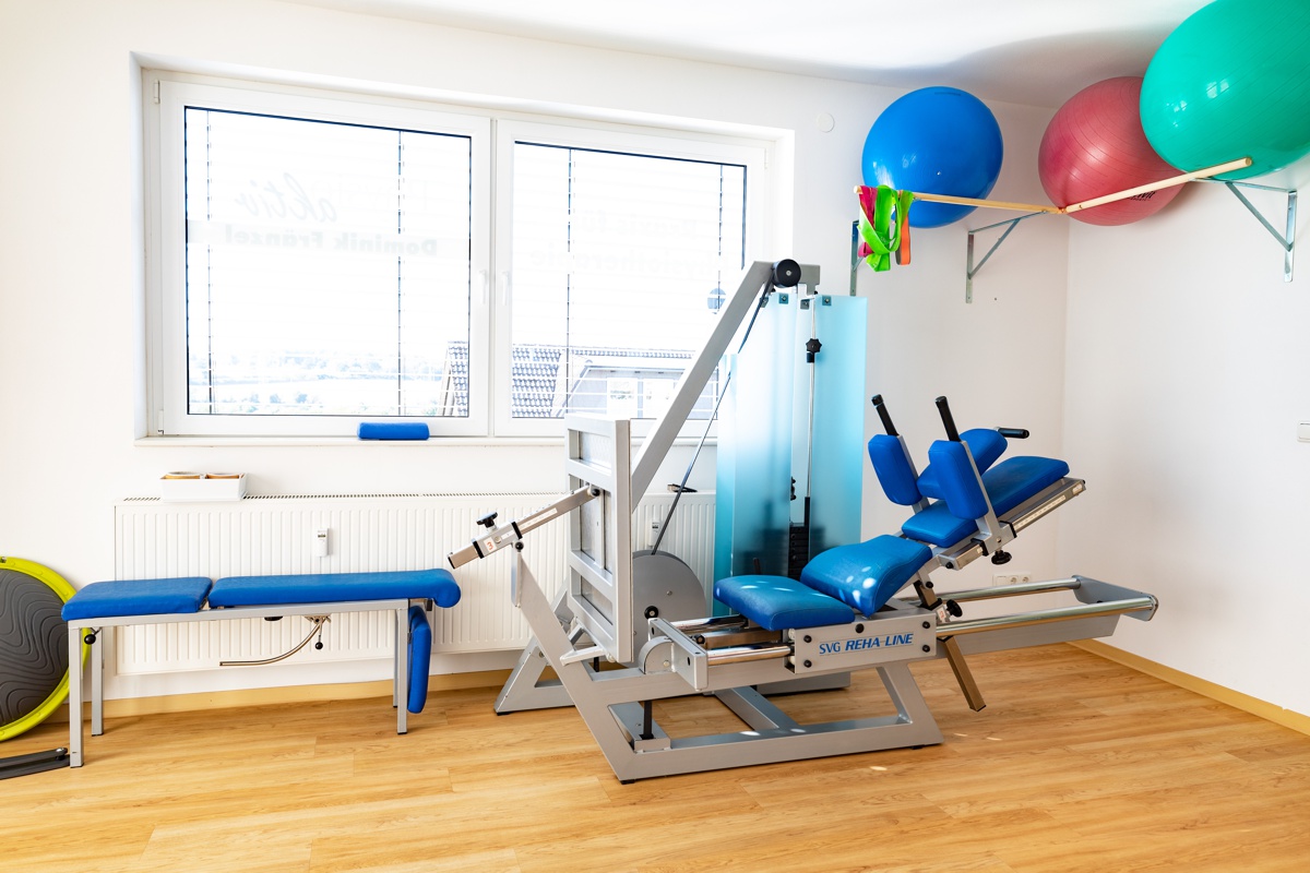 Krankengymnastik am Gerät dient dem gezielten Muskeltraining, so dass die Muskulatur sich in der Ausdauer verbessert und die nötige Stabilisation der Gelenke und Wirbelsäule übernehmen kann.